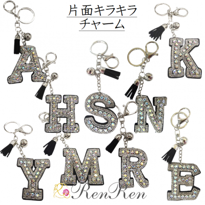 キラキライニシャルバッグチャーム ☆表面のみラインストーン付